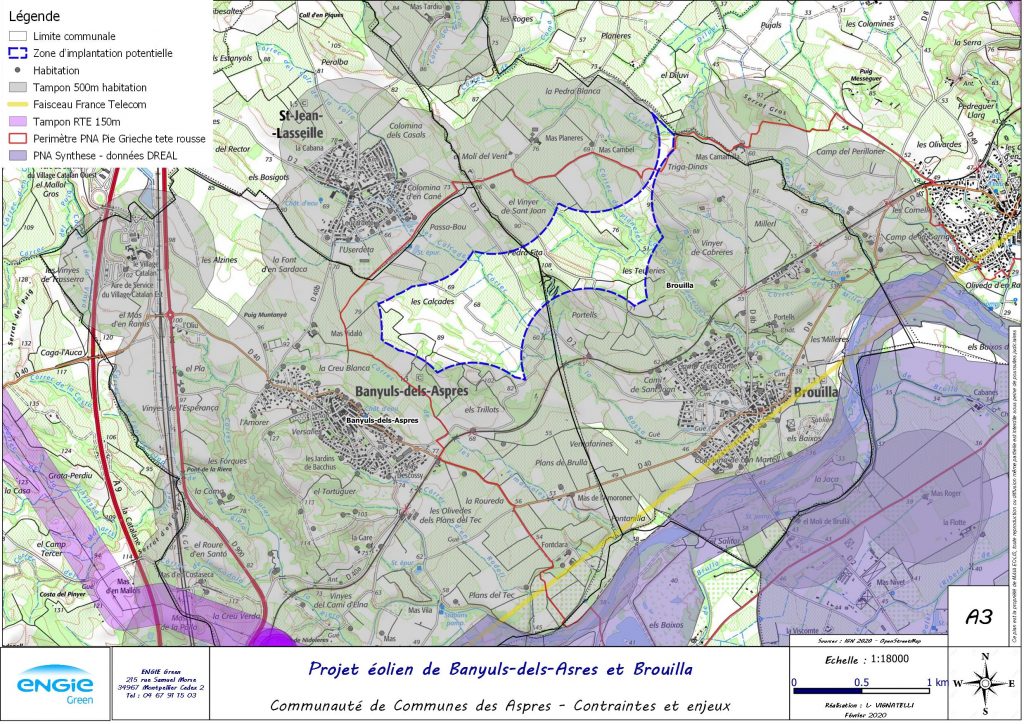 Au sein de l’ex département Languedoc-Roussillon, assez peu de zones étaient présentées comme zones à enjeux faibles ou moyens comme le montre la carte ci-dessus. Le projet de Banyuls dels Aspres et Brouilla se trouve au sein de l’une d’entre elles.