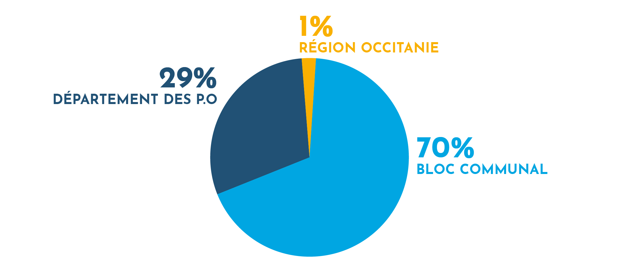 • 70 % pour le bloc communal (commune de Banyuls dels Aspres, commune de Brouilla et la Communauté de Communes des Aspres), soit environ 116 900 €.